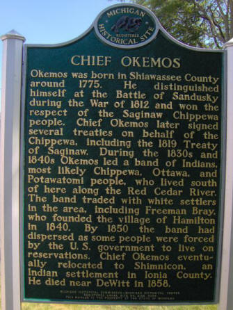 Okemos was born in Shiawassee County around 1775. He distinguished