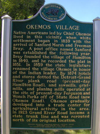 renamed the village Okemos in honor of the Indian leader. By 1874